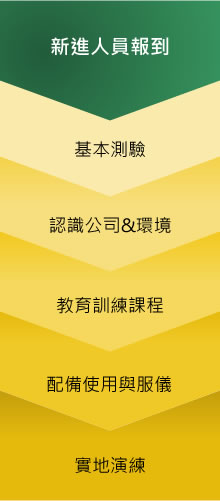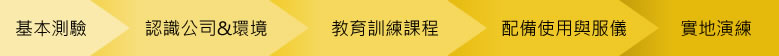 攜帶相關證件至公司辦理新任人員報到手續,在進行保全基本知識測驗與職前訓練,並介紹駐點環境與設備使用方式,最後提領制服配備,實地演練操作。